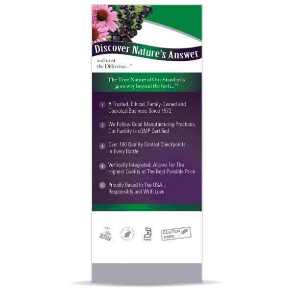 Nature's Answer Sambucus Original ist ein Holunderbeerenextrakt mit einer hohen Konzentration an schwarzen Holunderbeeren, sorgfältig verarbeitet, um das natürliche Gleichgewicht der Beeren zu bewahren.